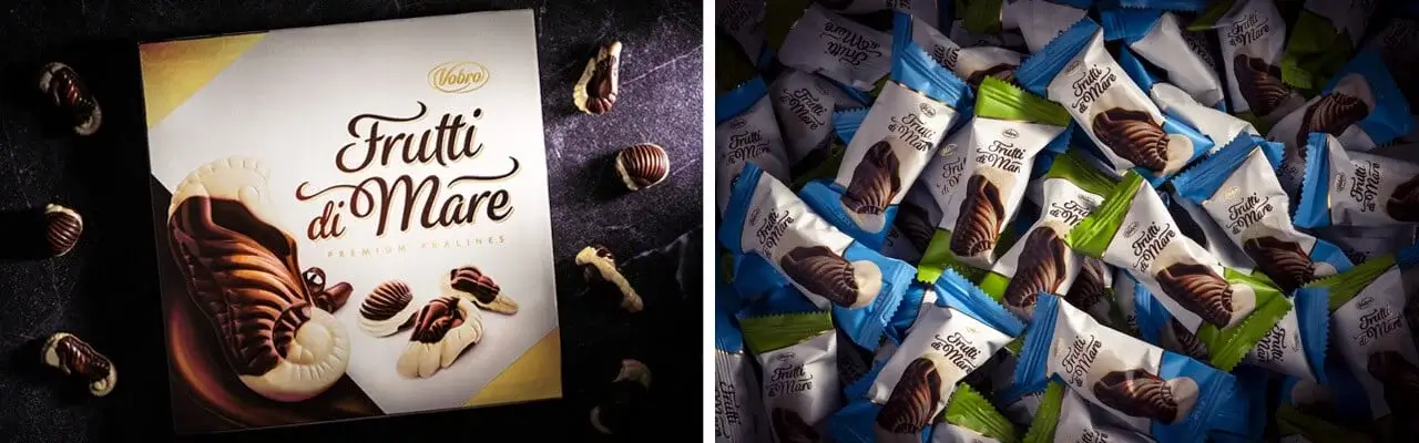 W ofercie dominują unikalne, autorskie koncepty produktowe, takie jak: praliny w kształtach owoców morza,